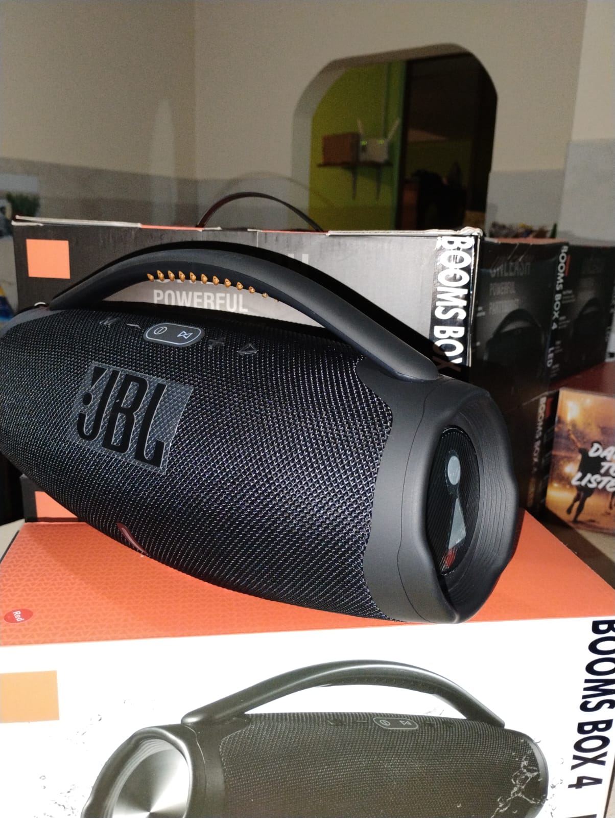 Lleva tu música a otro nivel con el JBL Boombox 4, el parlante diseñado para quienes no se conforman con un sonido normal. Disfruta de graves profundos, volumen potente y una claridad impresionante que transforma cualquier espacio en una verdadera fiesta.