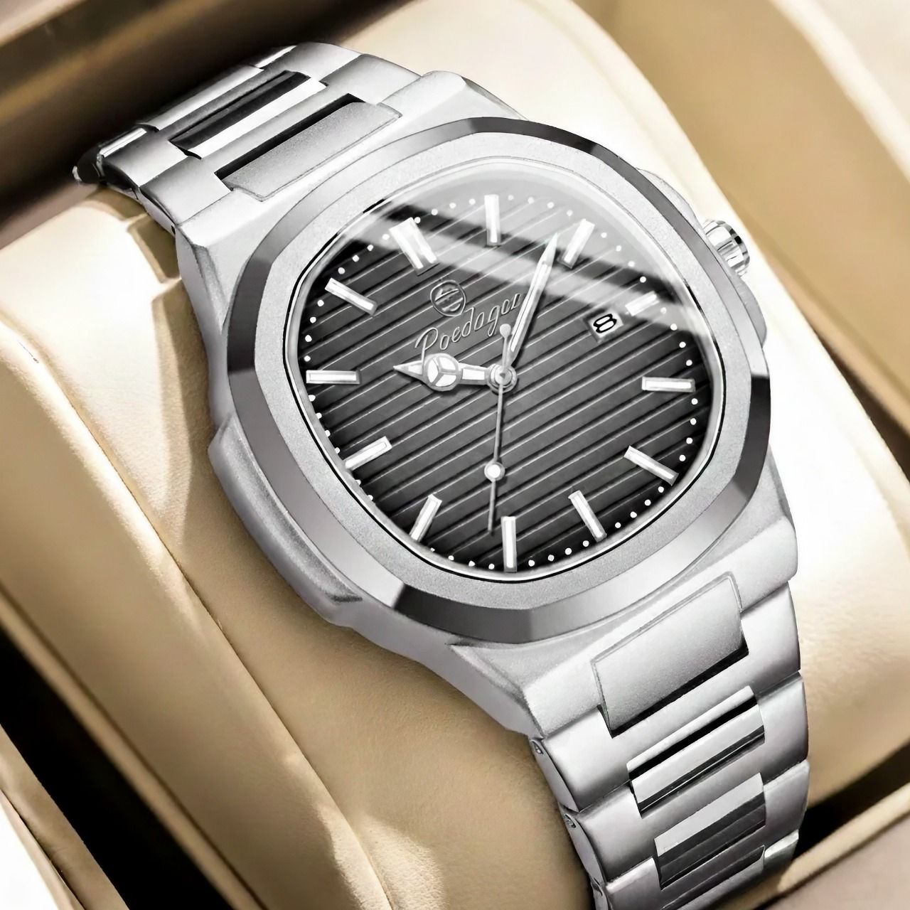 El modelo 930 de POEDAGAR es un reloj para hombres que combina estilo casual y elegante con materiales resistentes y funciones prácticas, ideal para el uso diario y ocasiones formales.